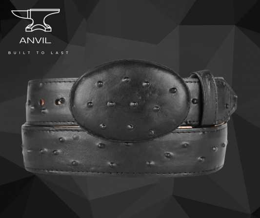 Black Ostrich Imitation Leather Belt – 1 1/2” Wide with Oval Buckle
